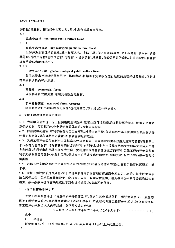 LY/T 1759-2008 东北、内蒙古国有林区天然林资源保护工程评价体系