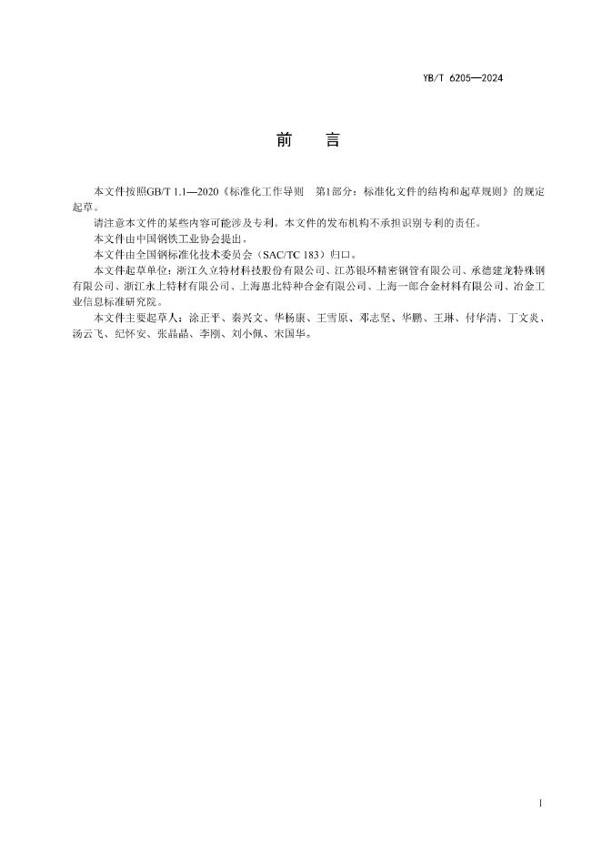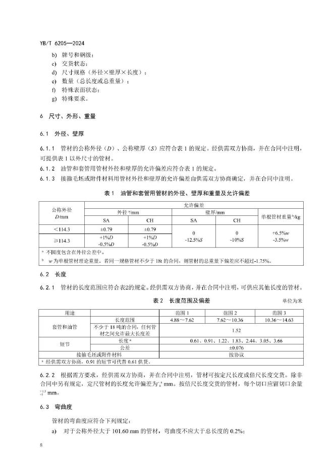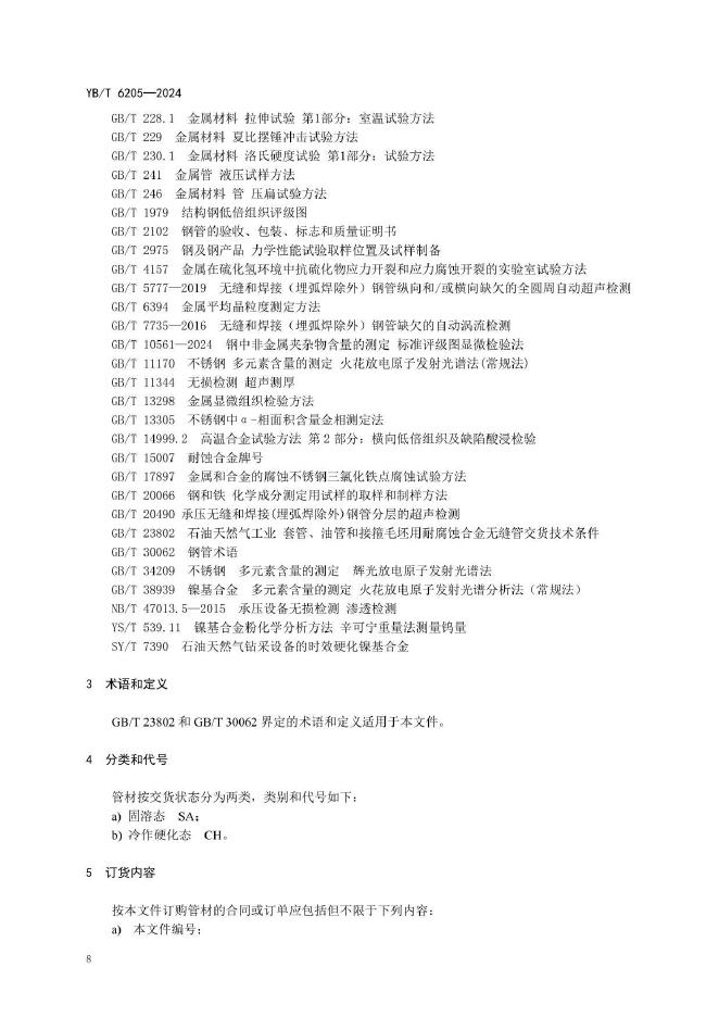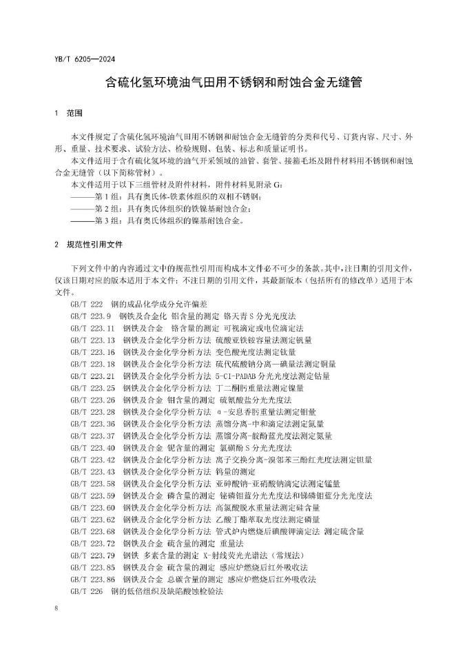 YB/T 6205-2024 含硫化氢环境油气田用不锈钢和耐蚀合金无缝管