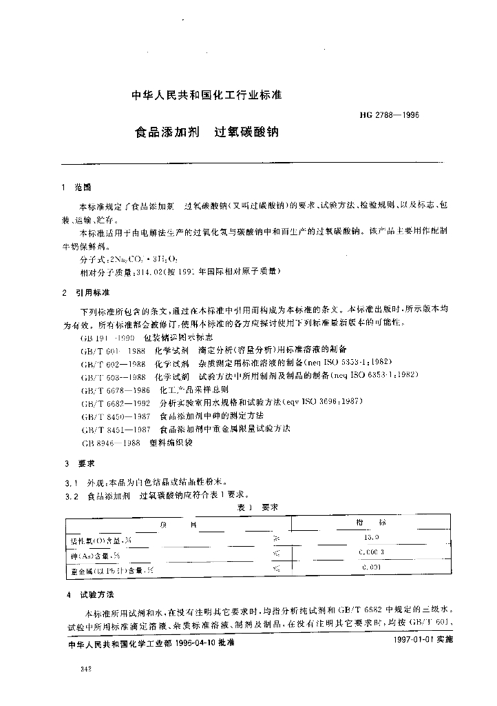 HG 2788-1996 食品添加剂 过氧碳酸钠