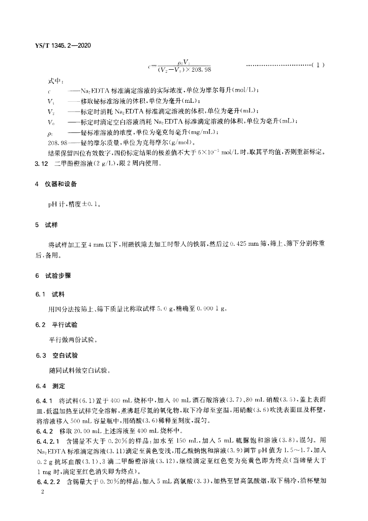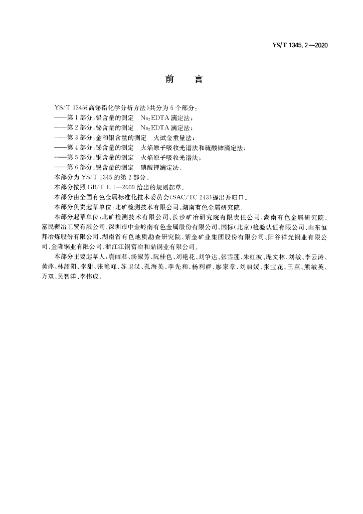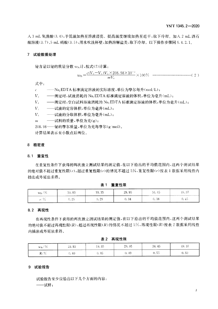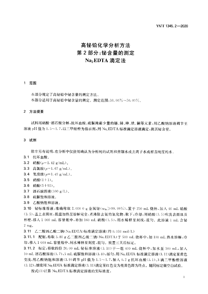 YS/T 1345.2-2020 高铋铅化学分析方法 第2部分:铋含量的测定 Na2EDTA滴定法