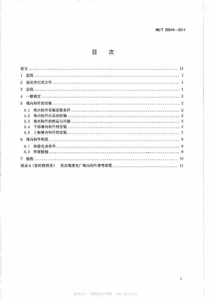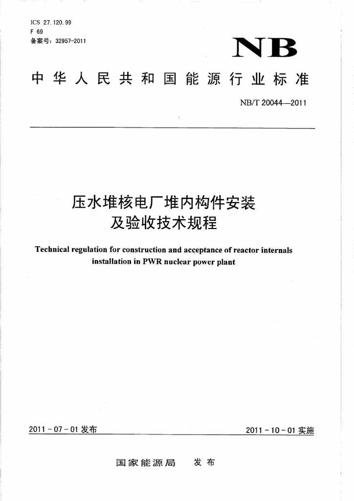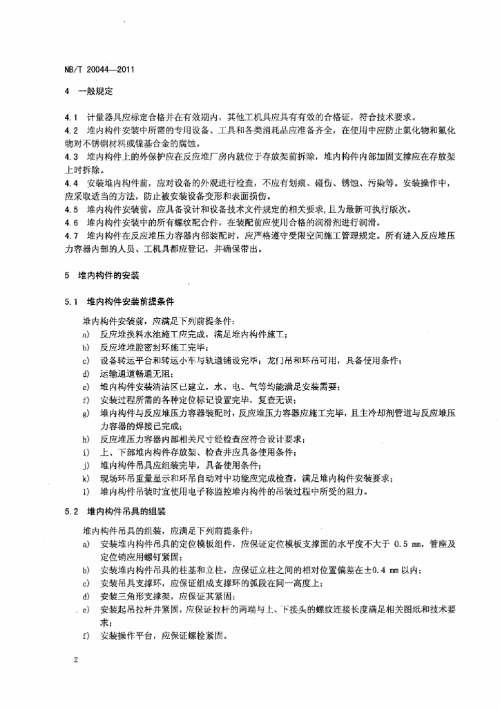 NB/T 20044-2011 压水堆核电厂堆内构件安装及验收技术规程