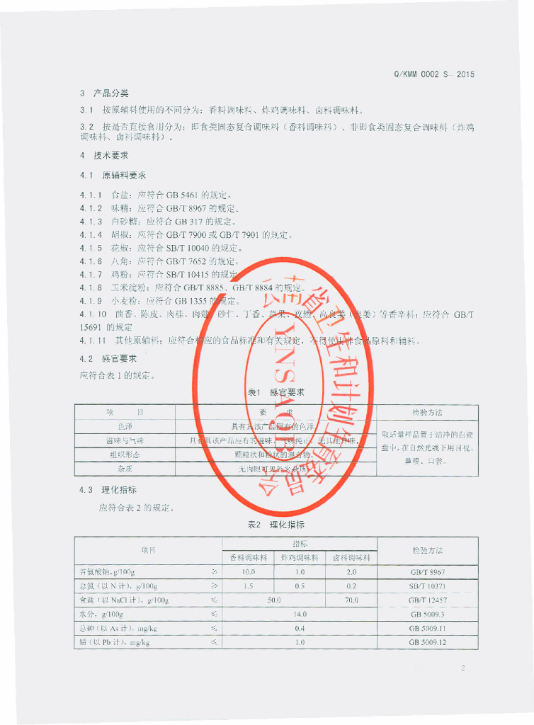 Q/KMM 0002S-2015 昆明妈姆食品有限公司 固态复合调味料
