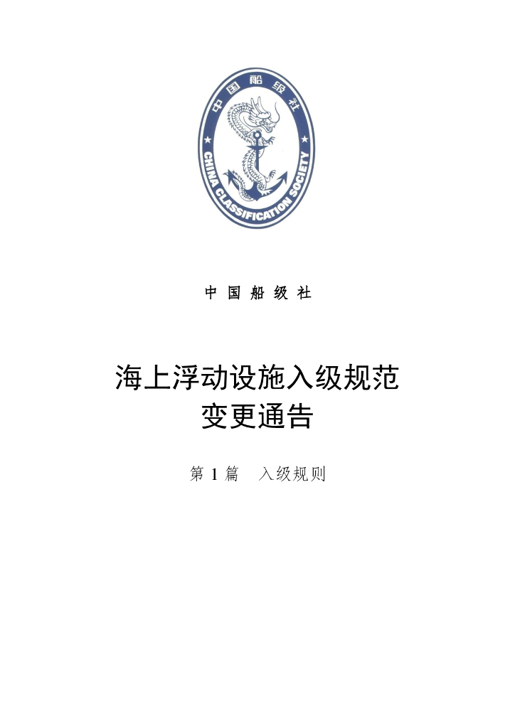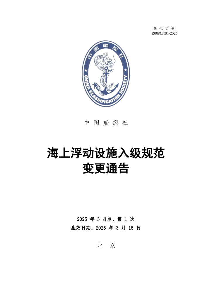 中国船级社(CCS):海上浮动设施入级规范-2025年第1次规范变更通告