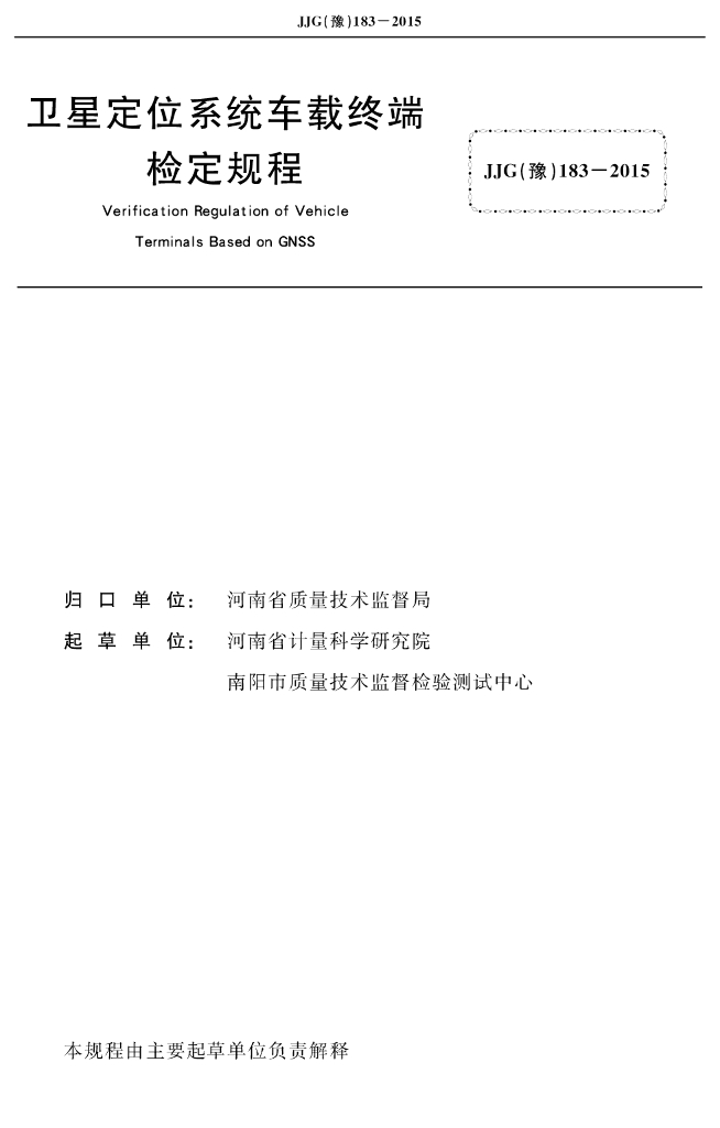 JJG(豫)183-2015 卫星定位系统车载终端检定规程