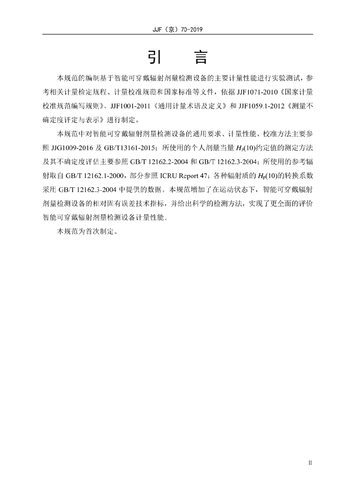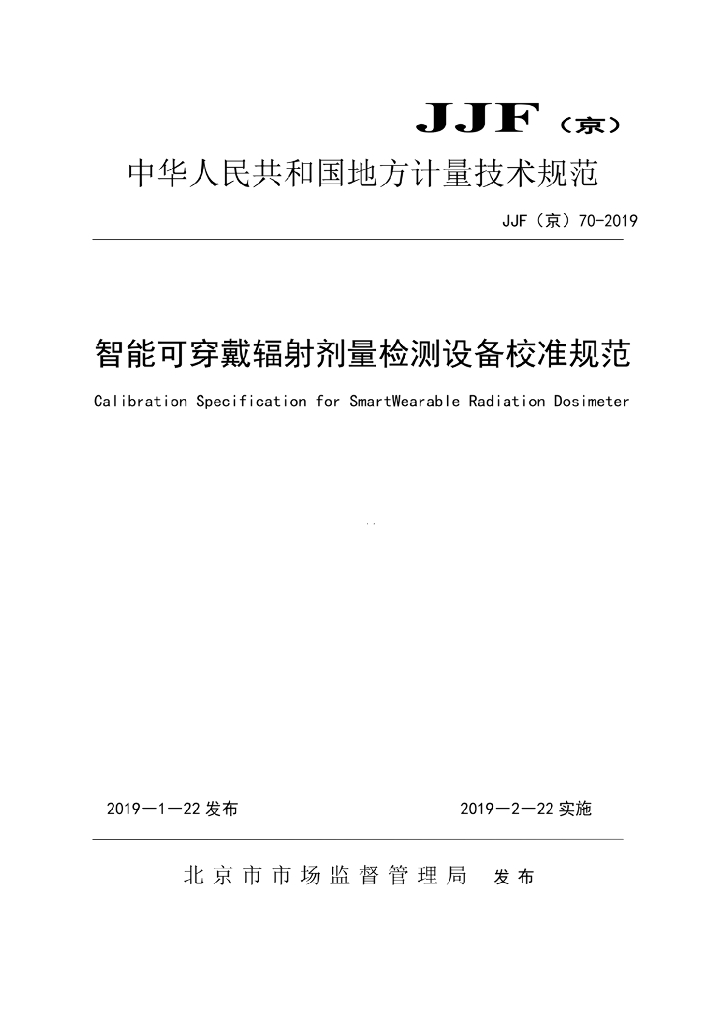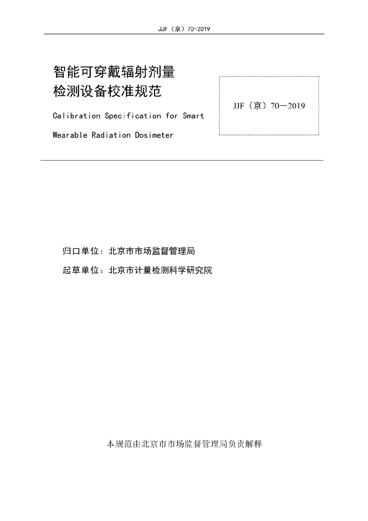 JJF(京)70-2019 智能可穿戴辐射剂量检测设备校准规范