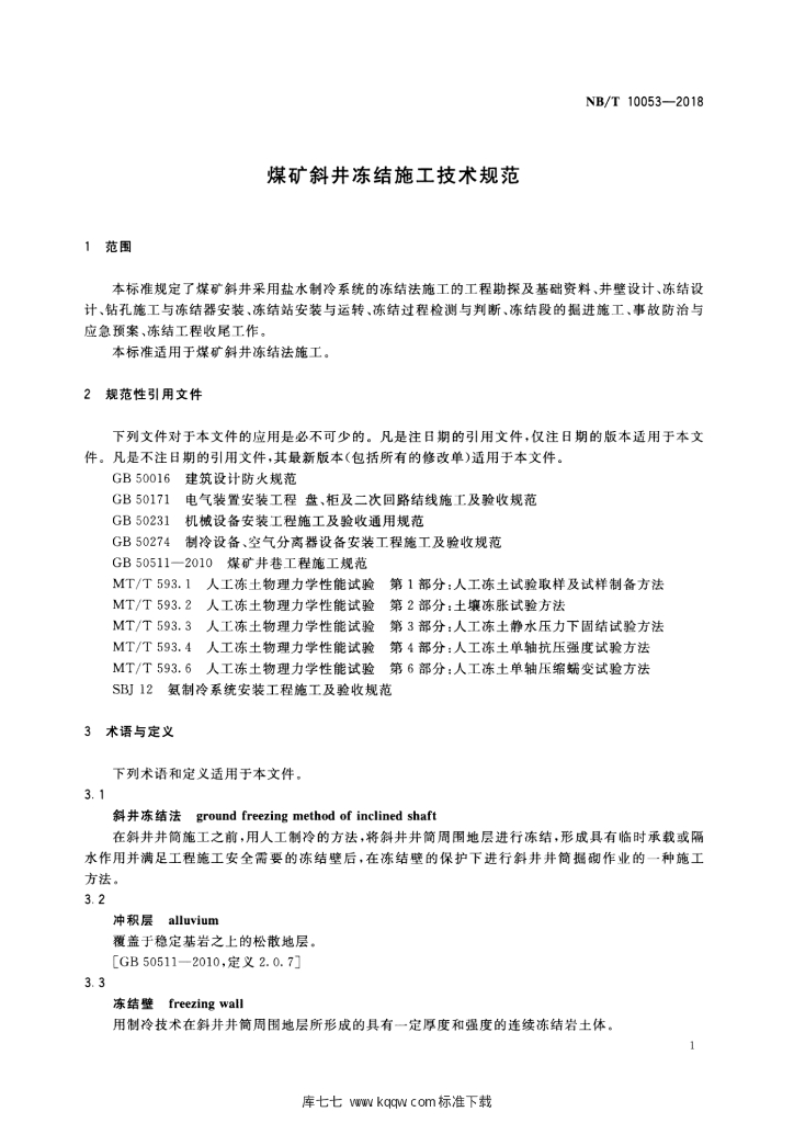 NB/T 10053-2018 煤矿斜井冻结施工技术规范