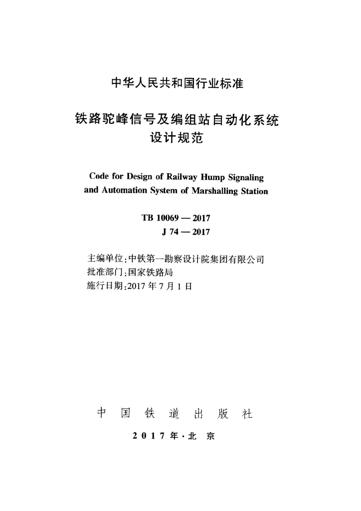 TB 10069-2017 铁路驼峰信号及编组站自动化系统设计规范