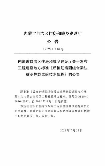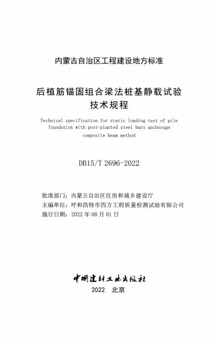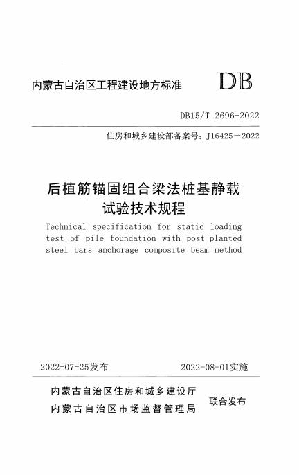 DB15/T 2696-2022 后植筋锚固组合梁法桩基静载试验技术规程