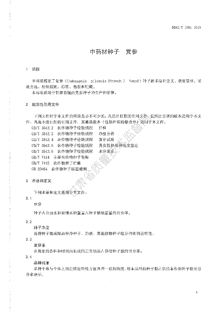 DB62/T 2001-2010 中药材种子 党参