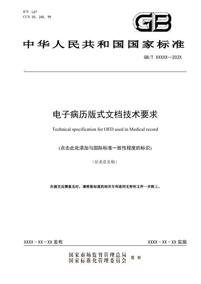 GB/T XXXX-2022X 电子病历版式文档技术要求(征求意见稿)