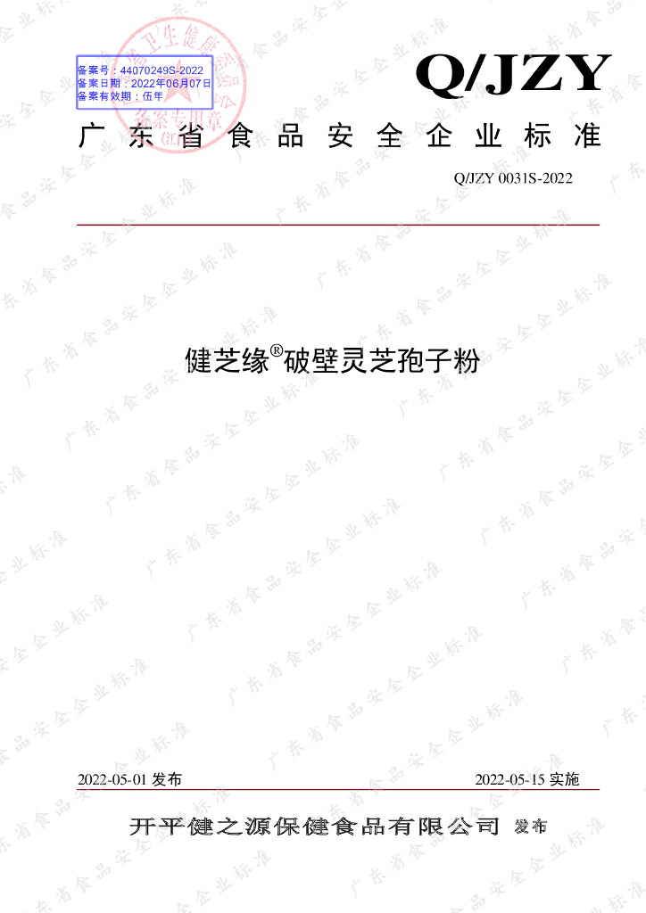 Q/JZY 0031S-2022 健芝缘®破壁灵芝孢子粉