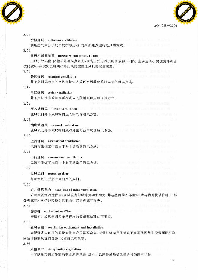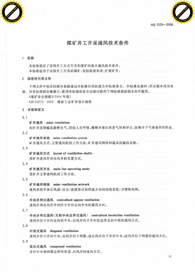 AQ 1028-2006 煤矿井工开采通风技术条件