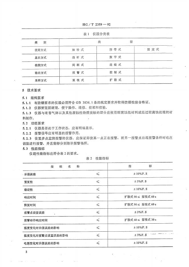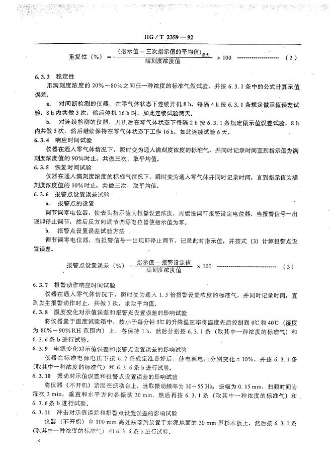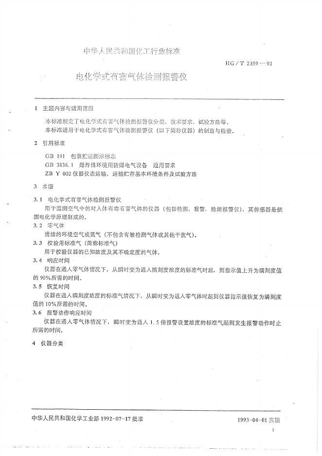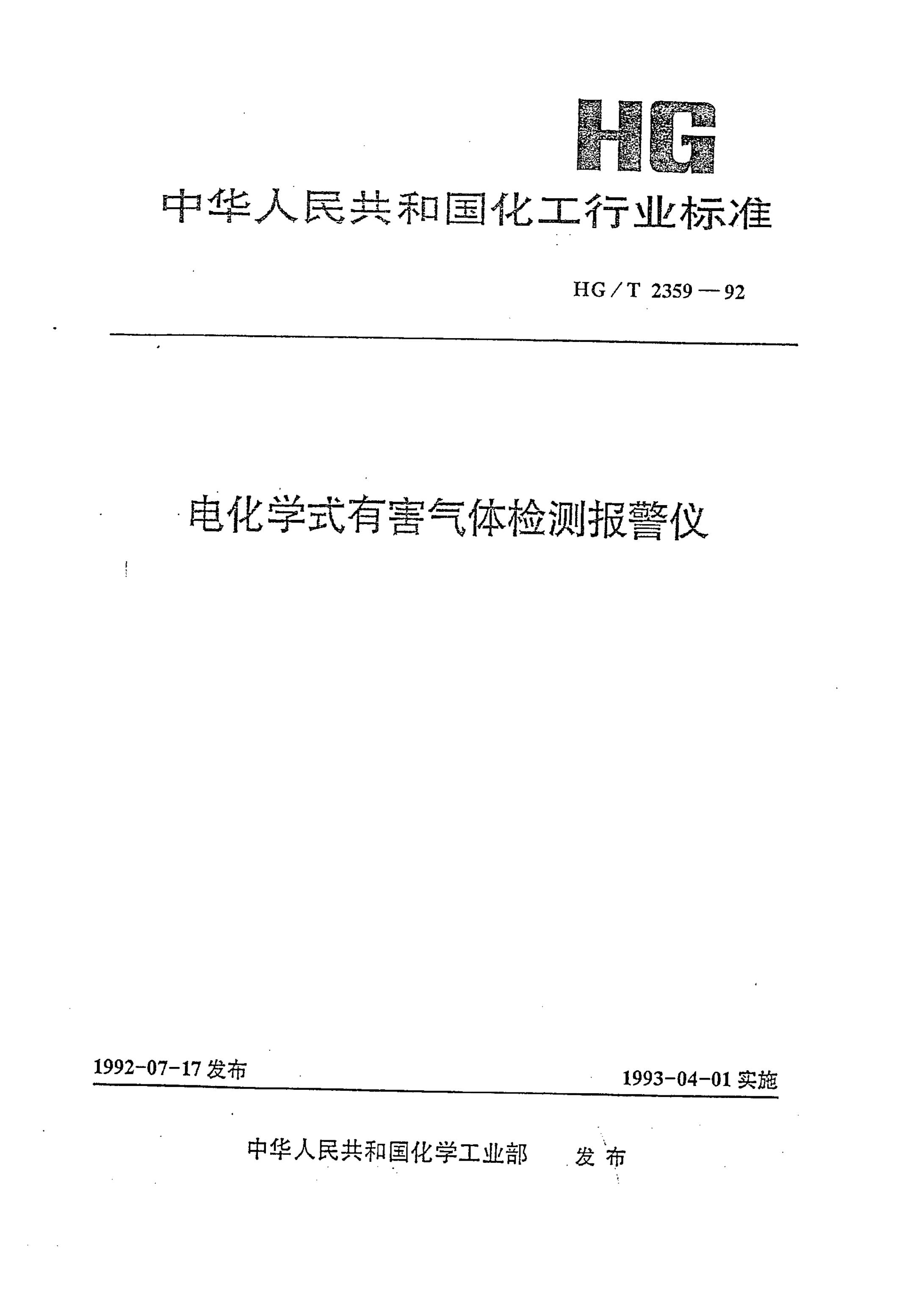 HG/T 2359-1992 电化学式有害气体检测报警仪