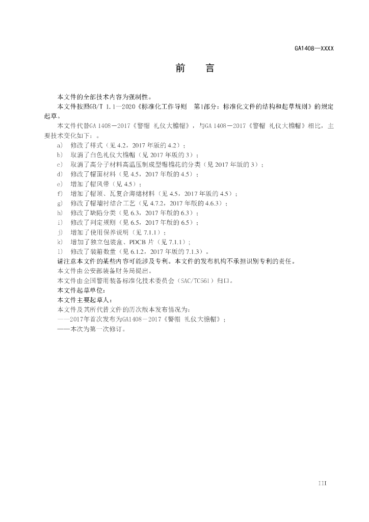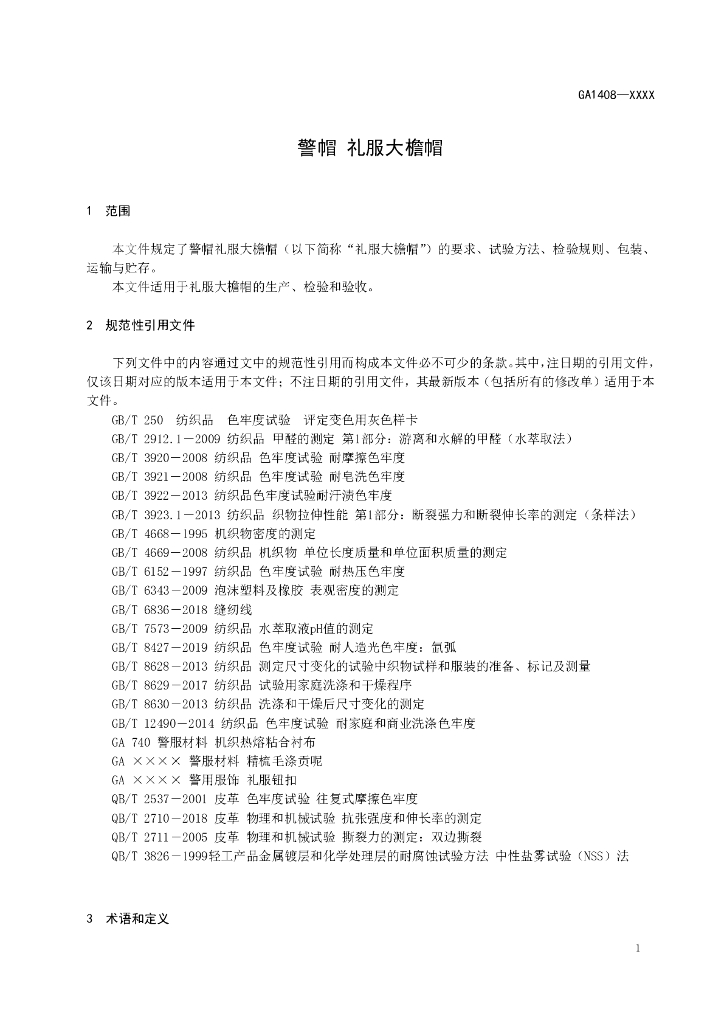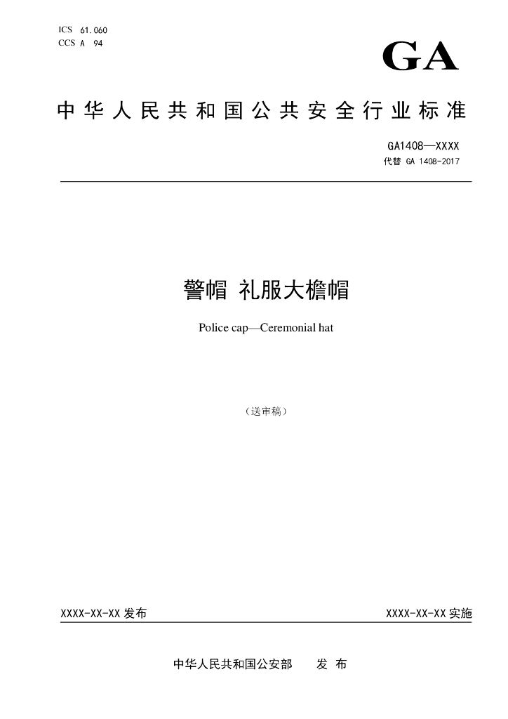 GA 1408-2023 警帽 礼服大檐帽(送审稿)