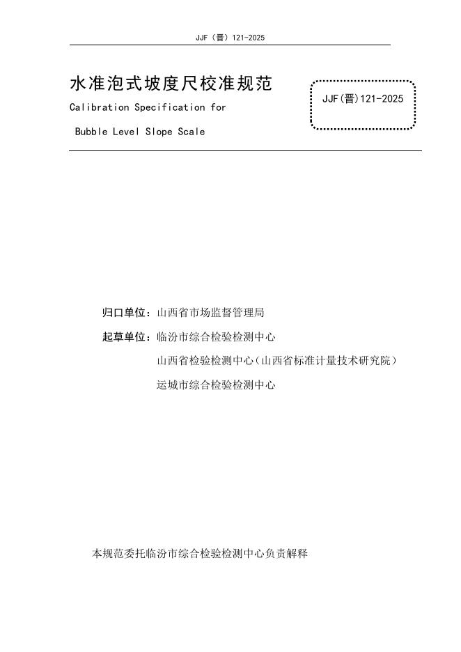 JJF(晋)121-2025 水准泡式坡度尺校准规范