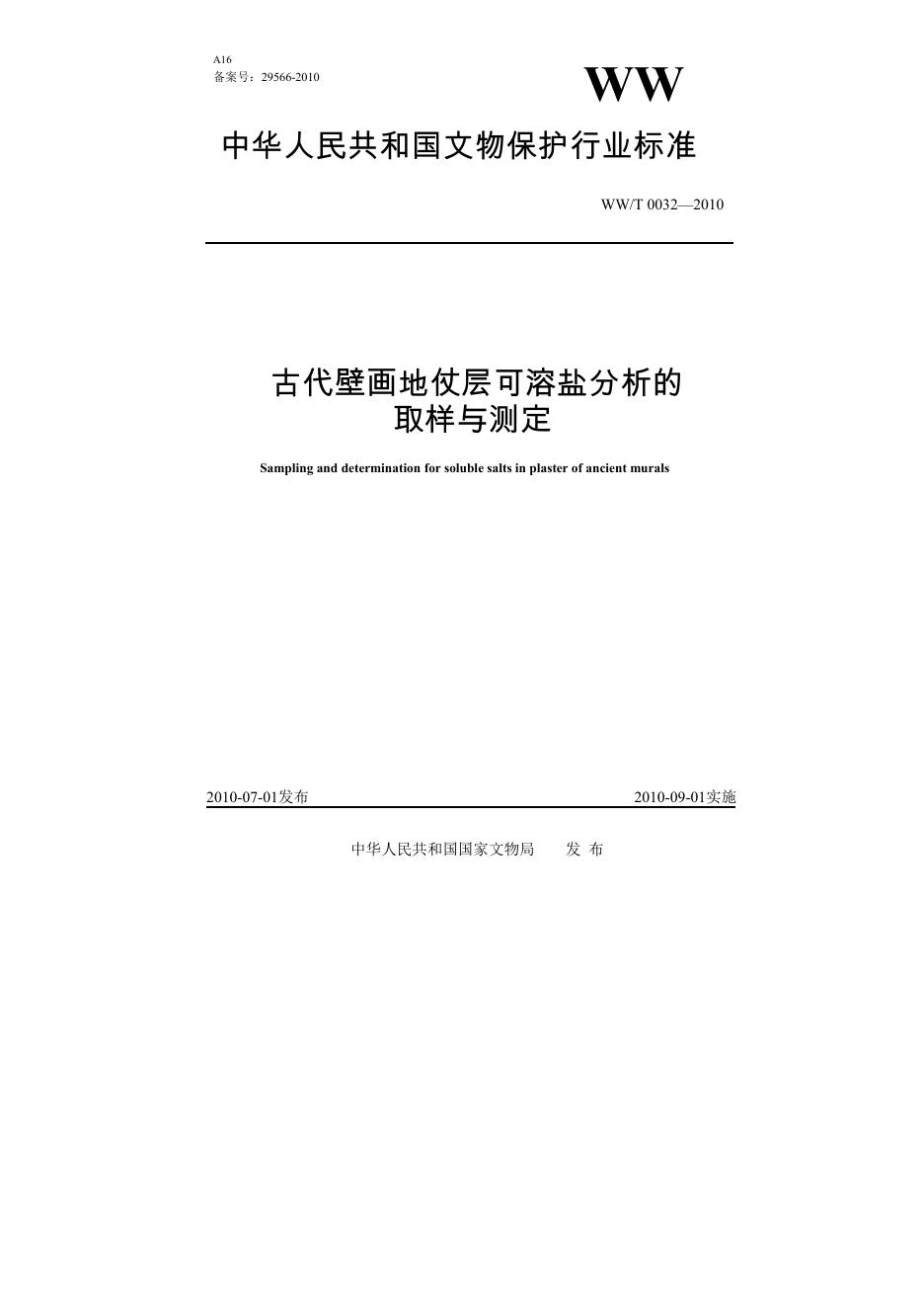 WW/T 0032-2010 古代壁画地仗层可溶盐分析的取样与测定
