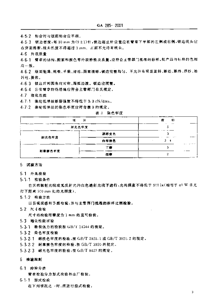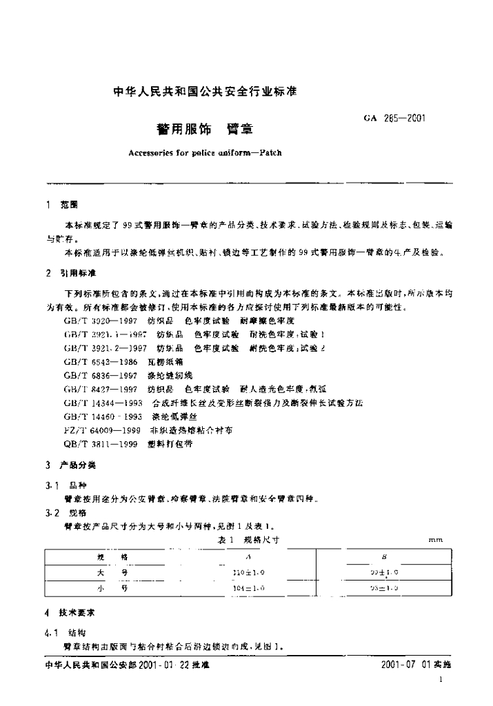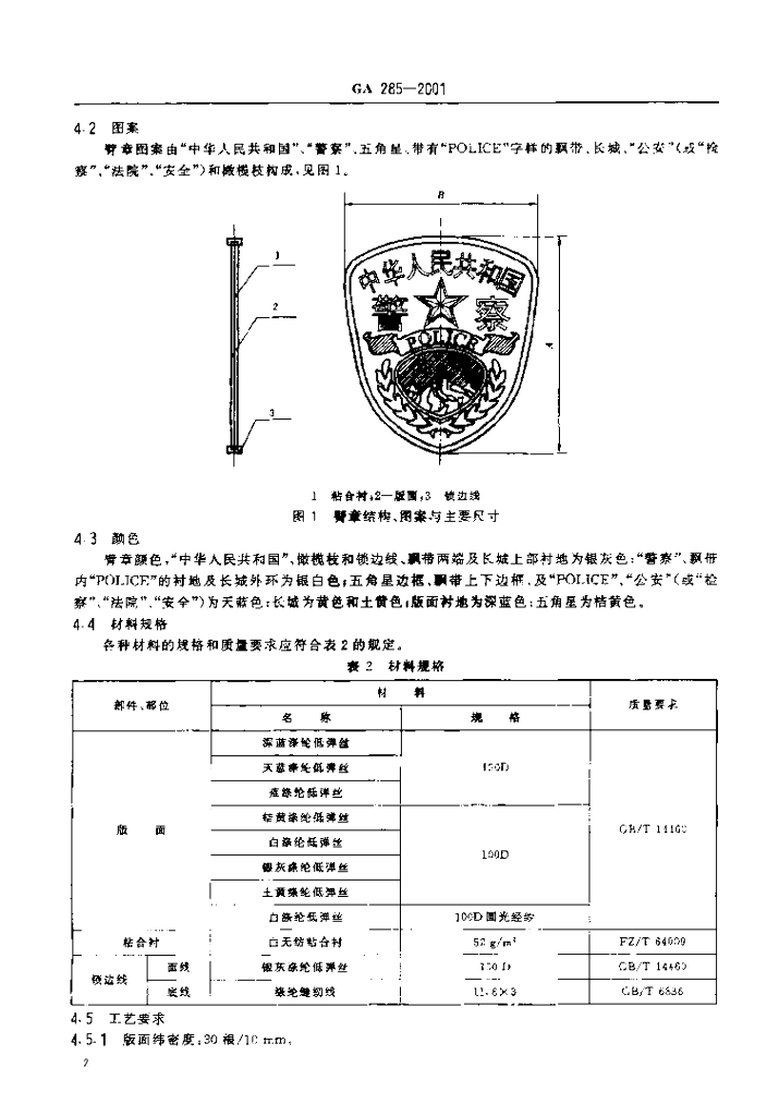 GA 285-2001 警用服饰臂章