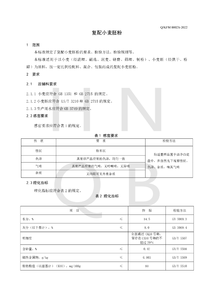 Q/KFM 0002S-2022 复配小麦胚粉
