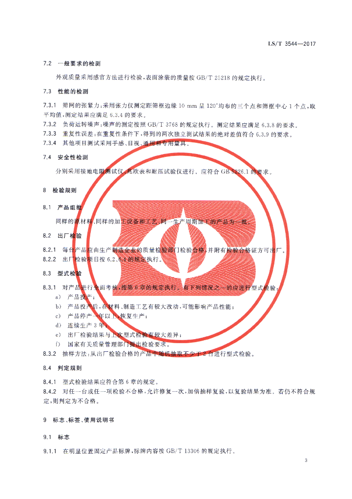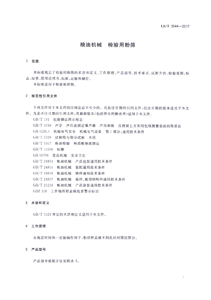 LS/T 3544-2017 粮油机械 检验用粉筛