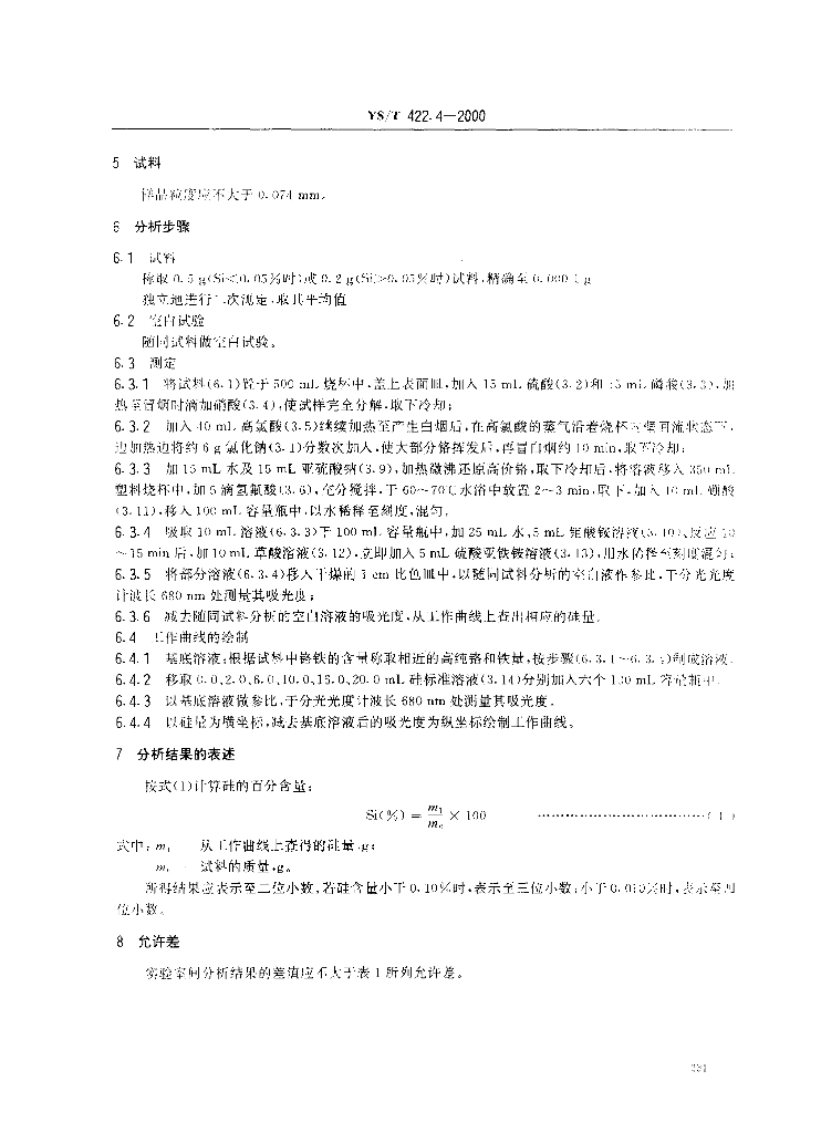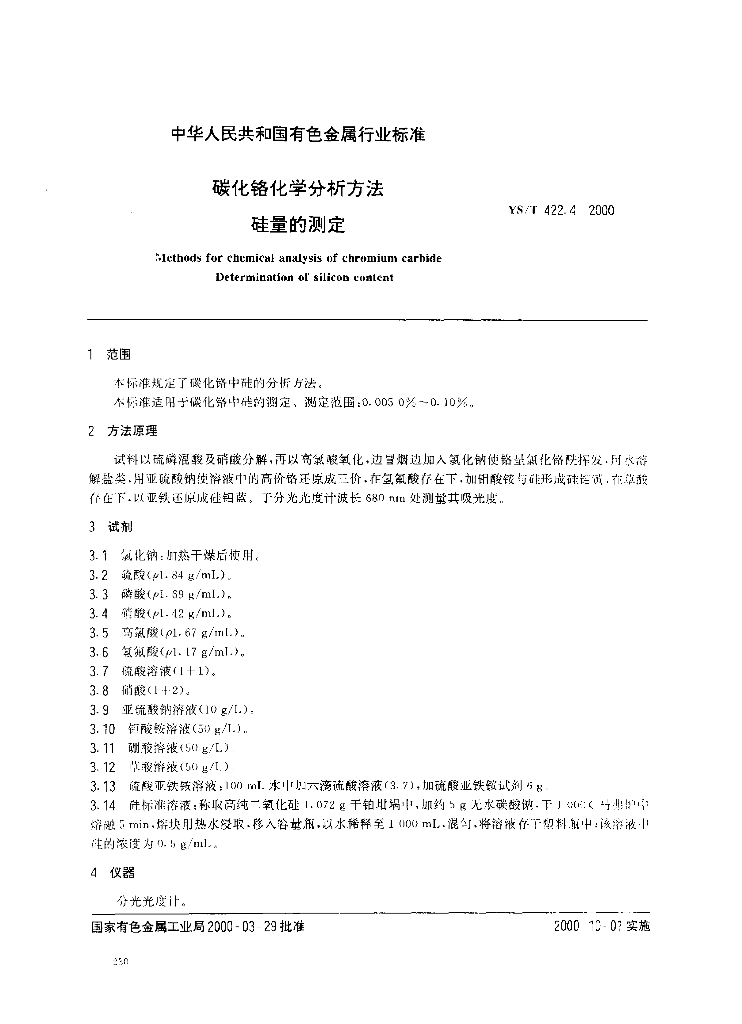 YS/T 422.4-2000 碳化铬化学分析方法硅量的测定