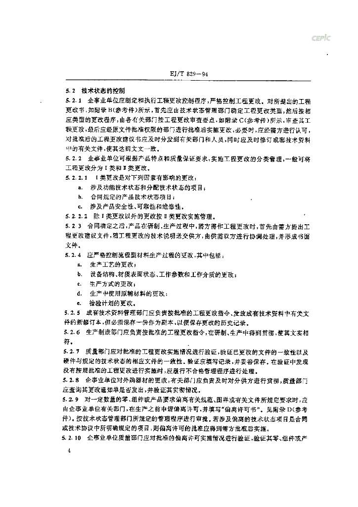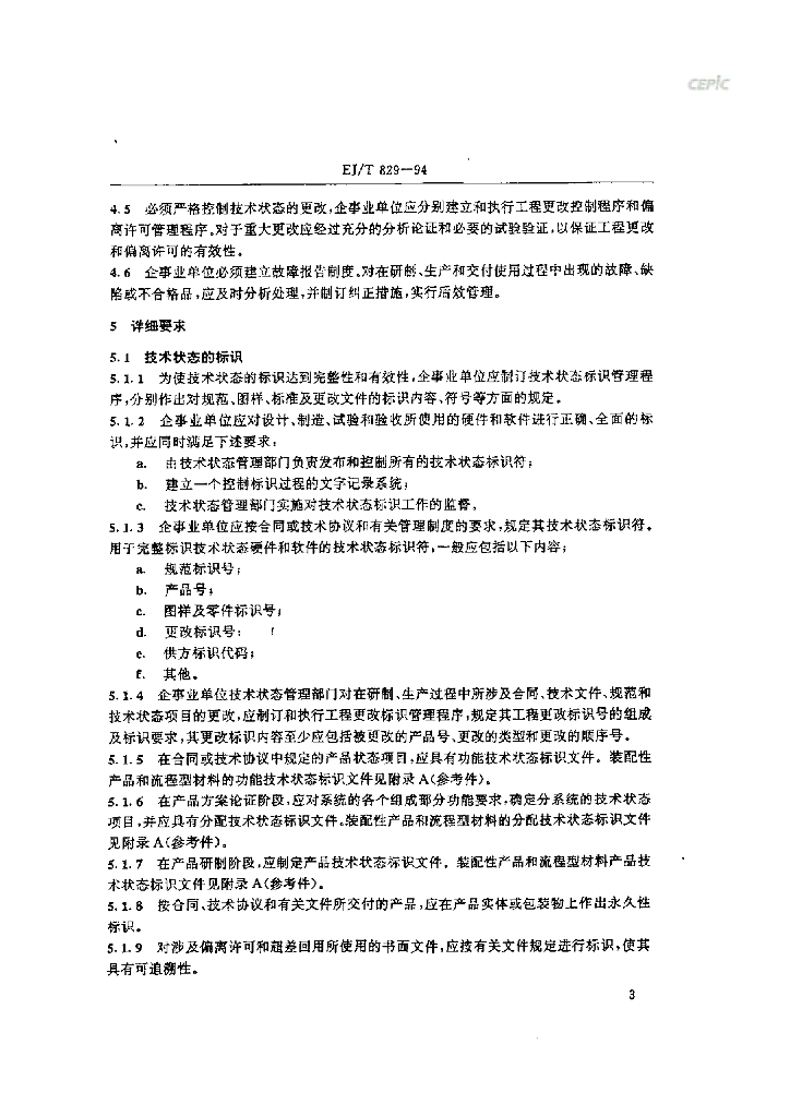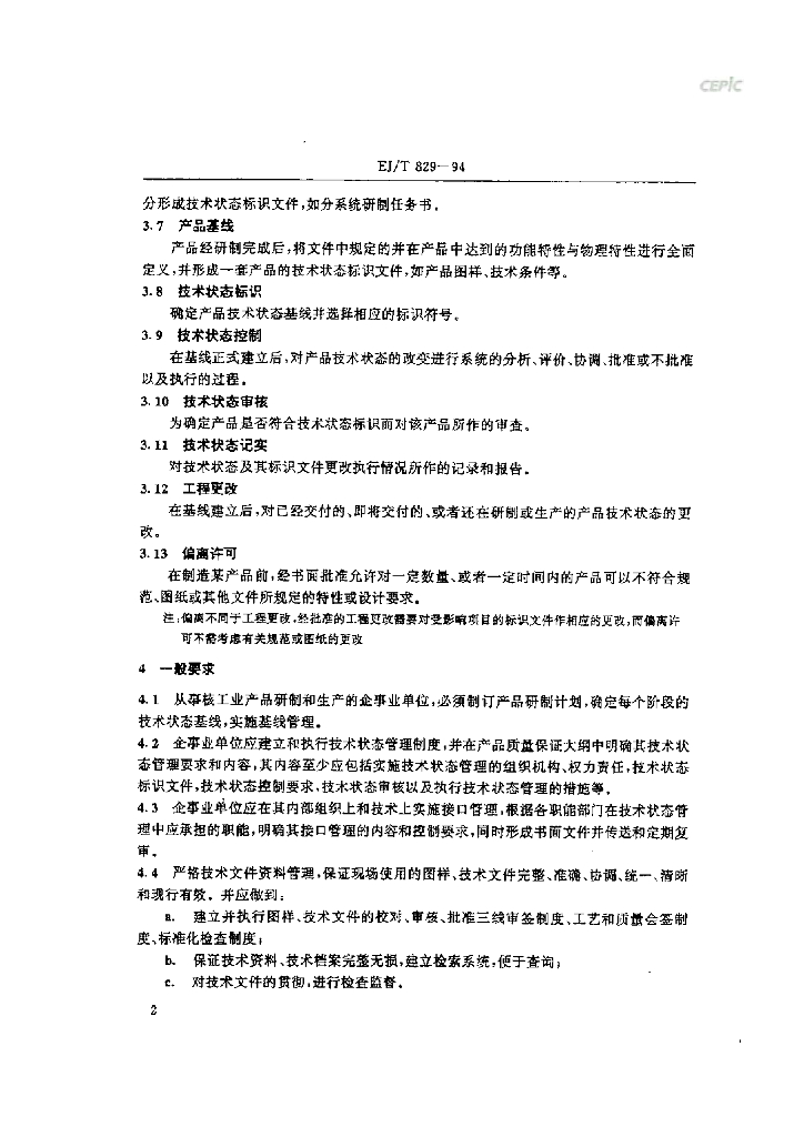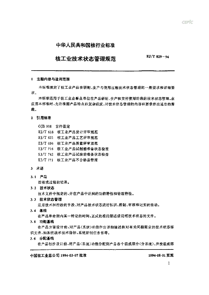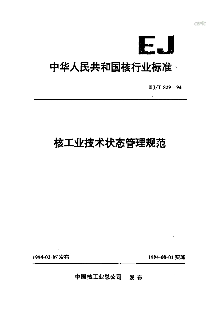 EJ/T 829-1994 核工业技术状态管理规范