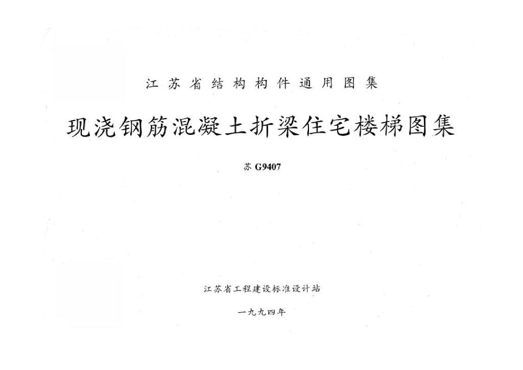 苏G9407 现浇钢筋混凝土折梁住宅楼梯图集