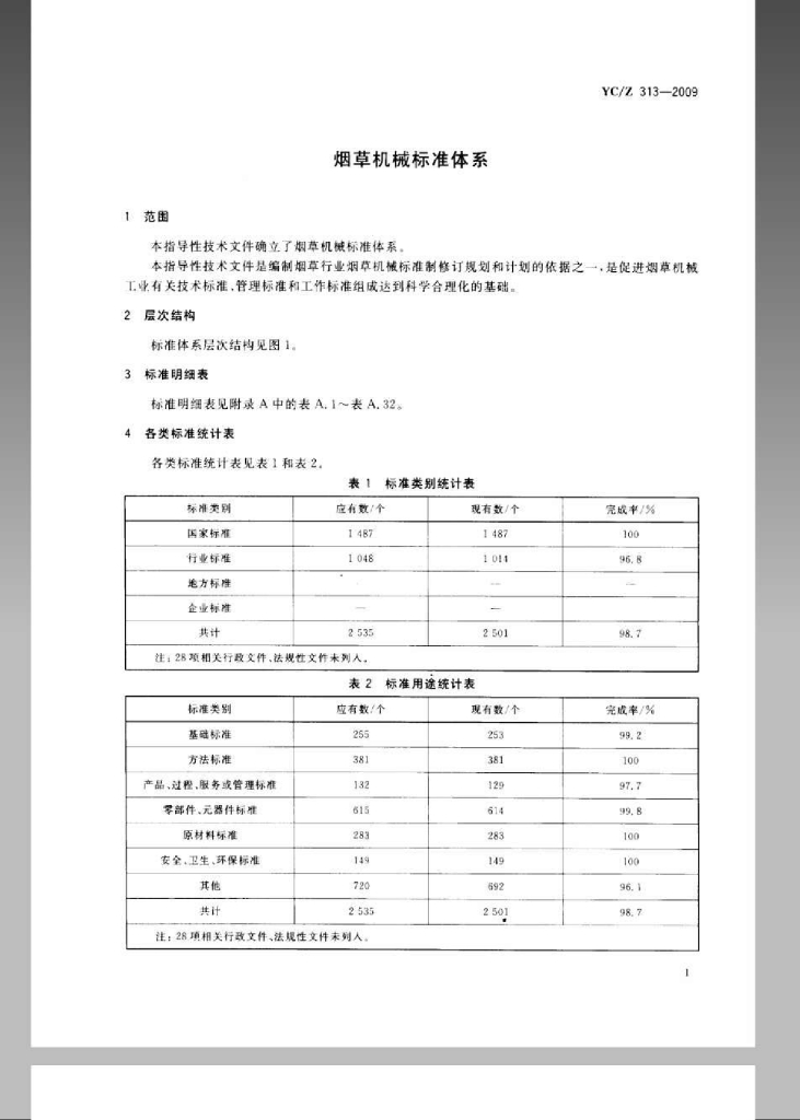 YC/Z 313-2009 烟草机械标准体系
