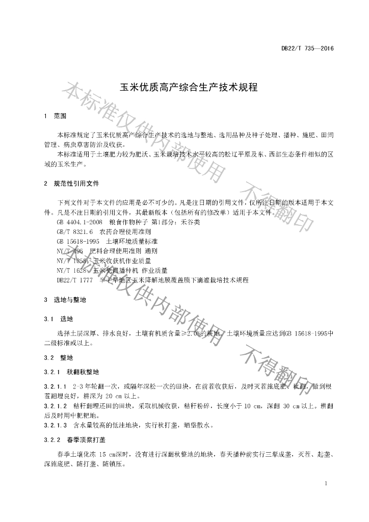 DB22/T 735-2016 玉米优质高产综合生产技术规程