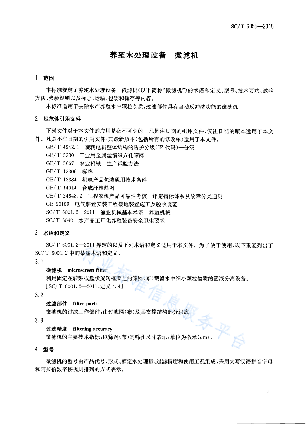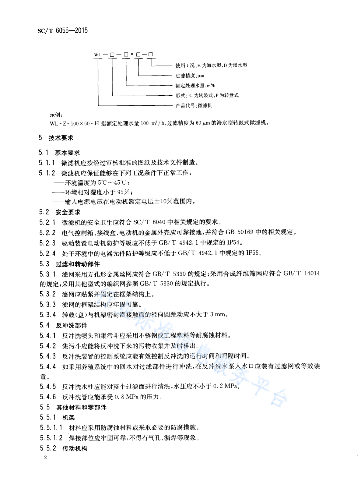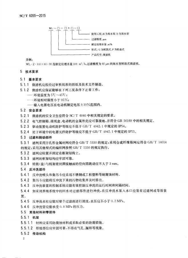 SC/T 6055-2015 养殖水处理设备 微滤机