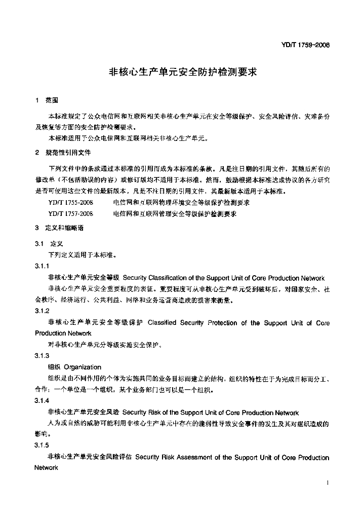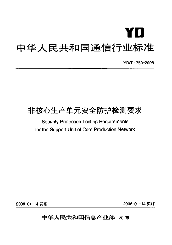 YD/T 1759-2008 非核心生产单元安全防护检测要求