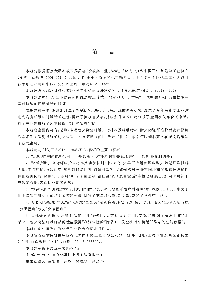HG/T 20642-2011 中华人民共和国化工行业标准化学工业炉耐火陶瓷纤维炉衬设计技术规定