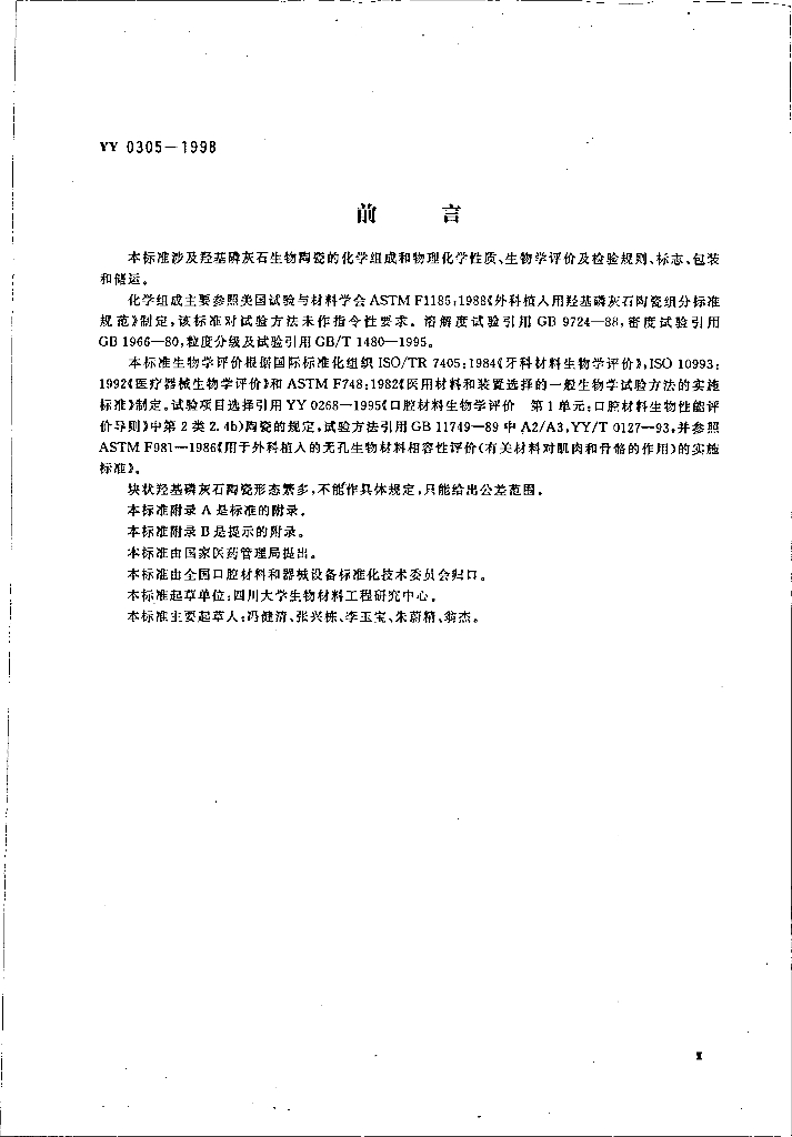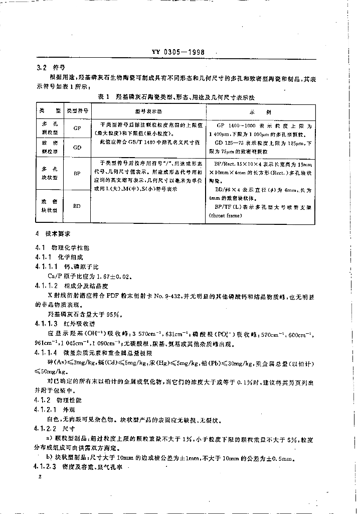 YY 0305-1998 羟基磷灰石生物陶瓷