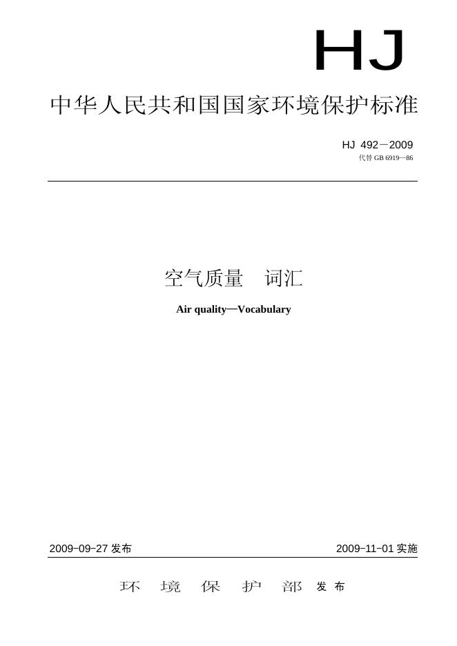 HJ 492-2009 空气质量 词汇