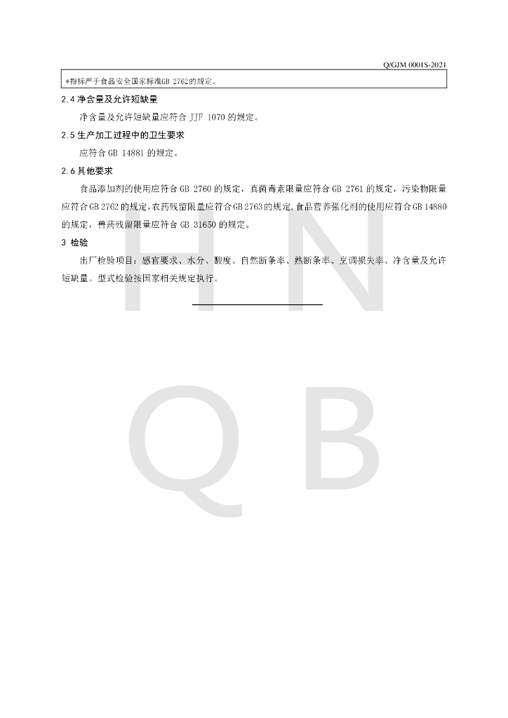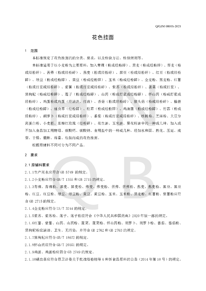 Q/GJM 0001S-2021 花色挂面