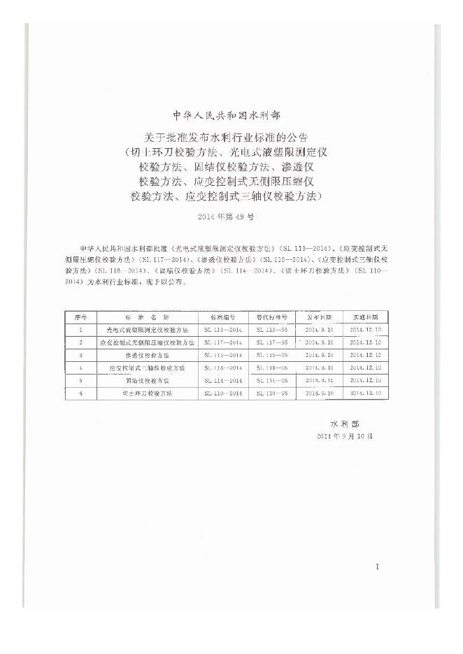 SL/T 114-2014 固结仪校验方法
