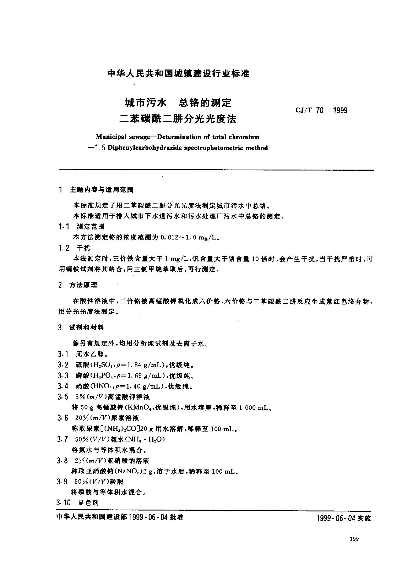 CJ 26.20-1991 城市污水水质检验方法标准 总铬的测定