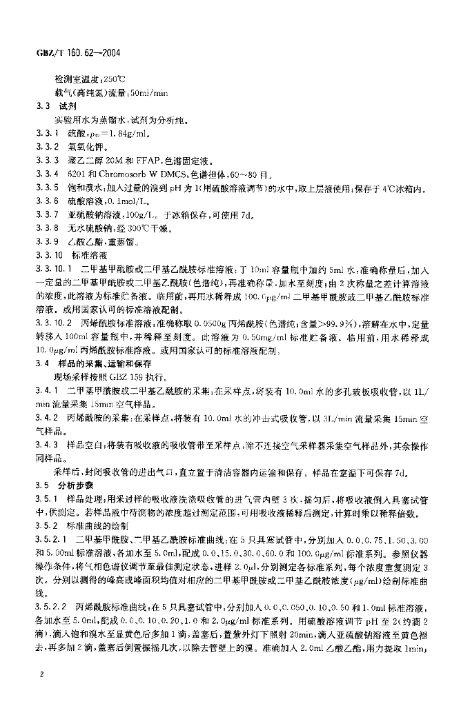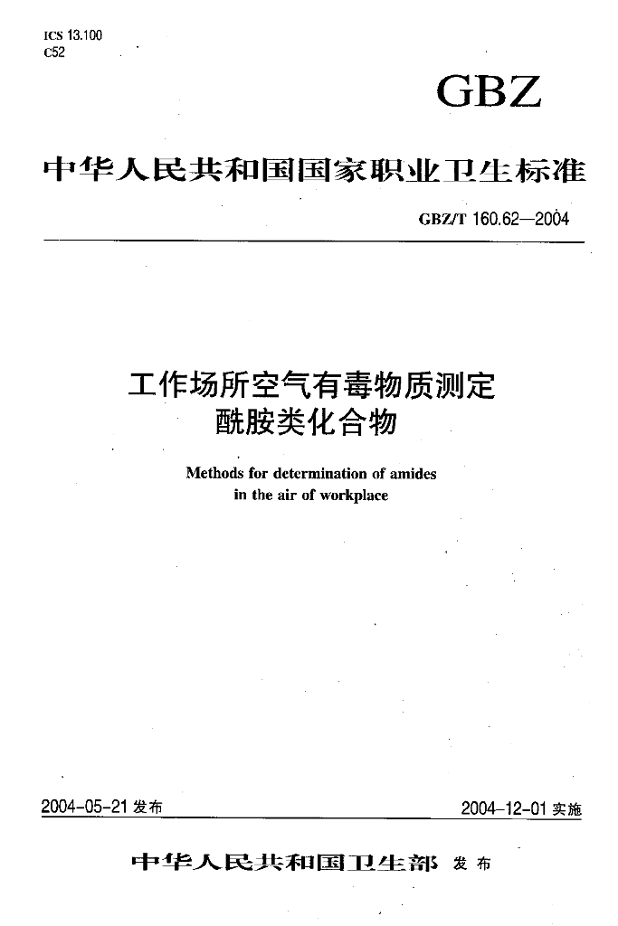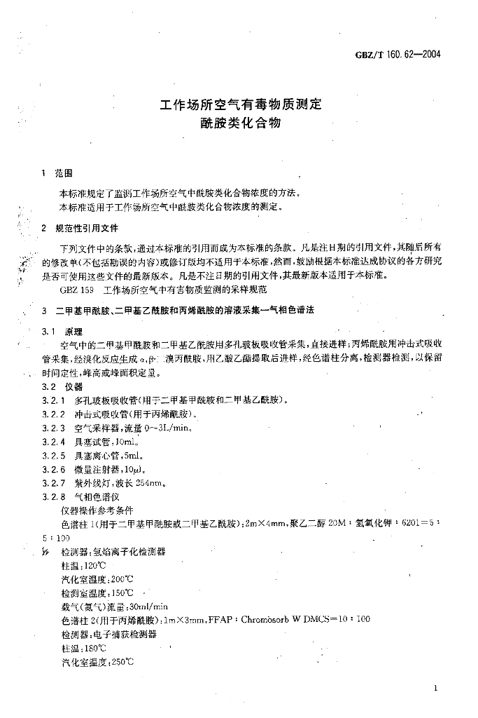 GBZ/T 160.62-2004 工作场所空气有毒物质测定 酰胺类化合物
