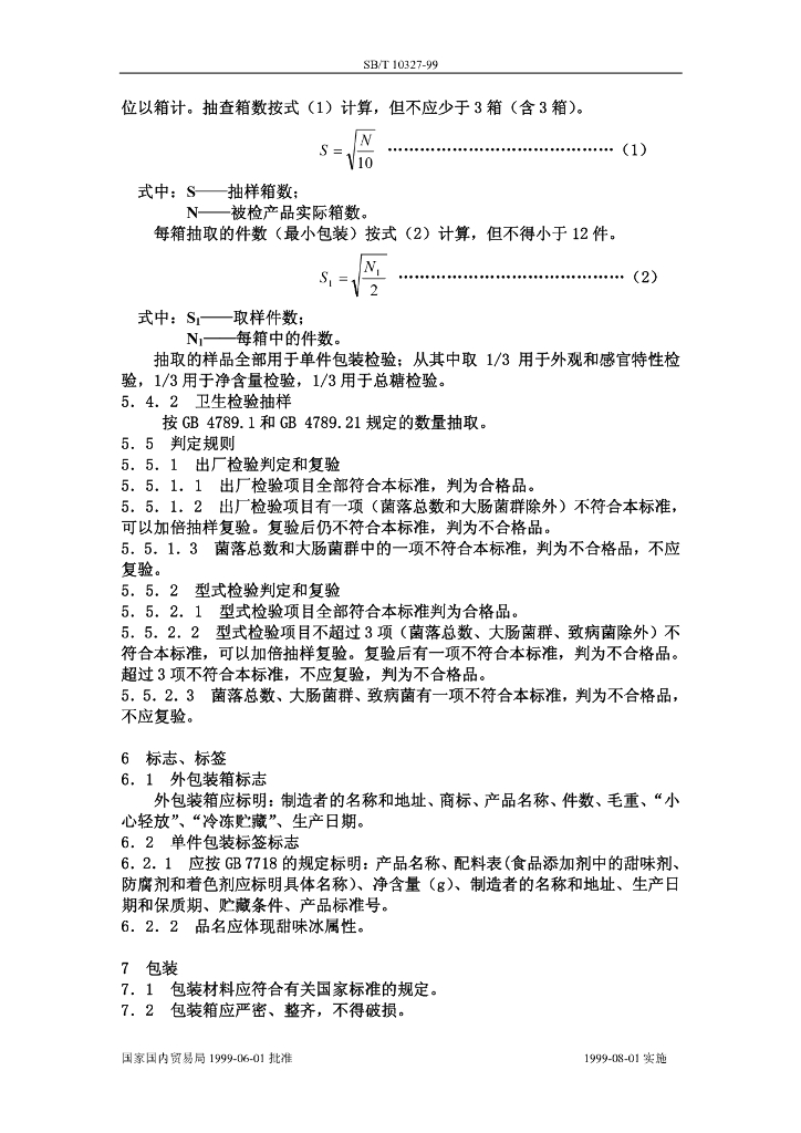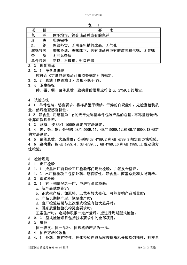 SB/T 10327-1999 甜味冰