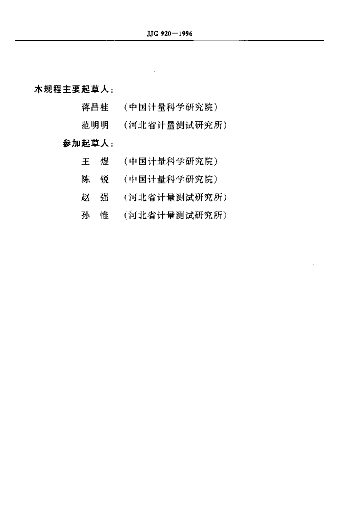 蒋昌桂(中国计量科学研究院)、范明明(河北省计量测试研究所)、王煜(中国计量科学研究院)、陈锐(中国计量科学研究院)、赵强(河北省计量测试研究所)、孙惟(河北省计量测试研究所)