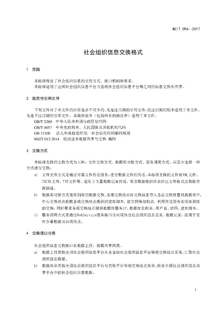 MZ/T 096-2017 社会组织信息交换格式