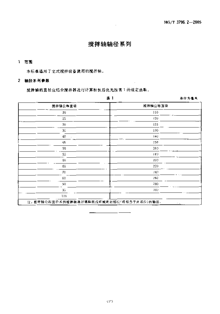 HG/T 3796.2-2005 搅拌轴轴径系列