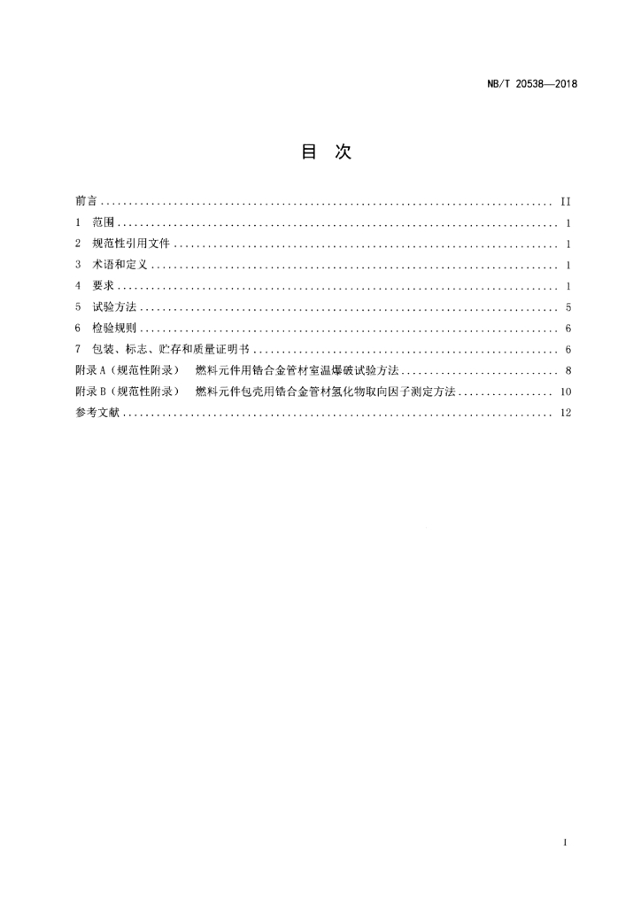 NB/T 20538-2018 压水堆核电厂燃料包壳用锆合金管材