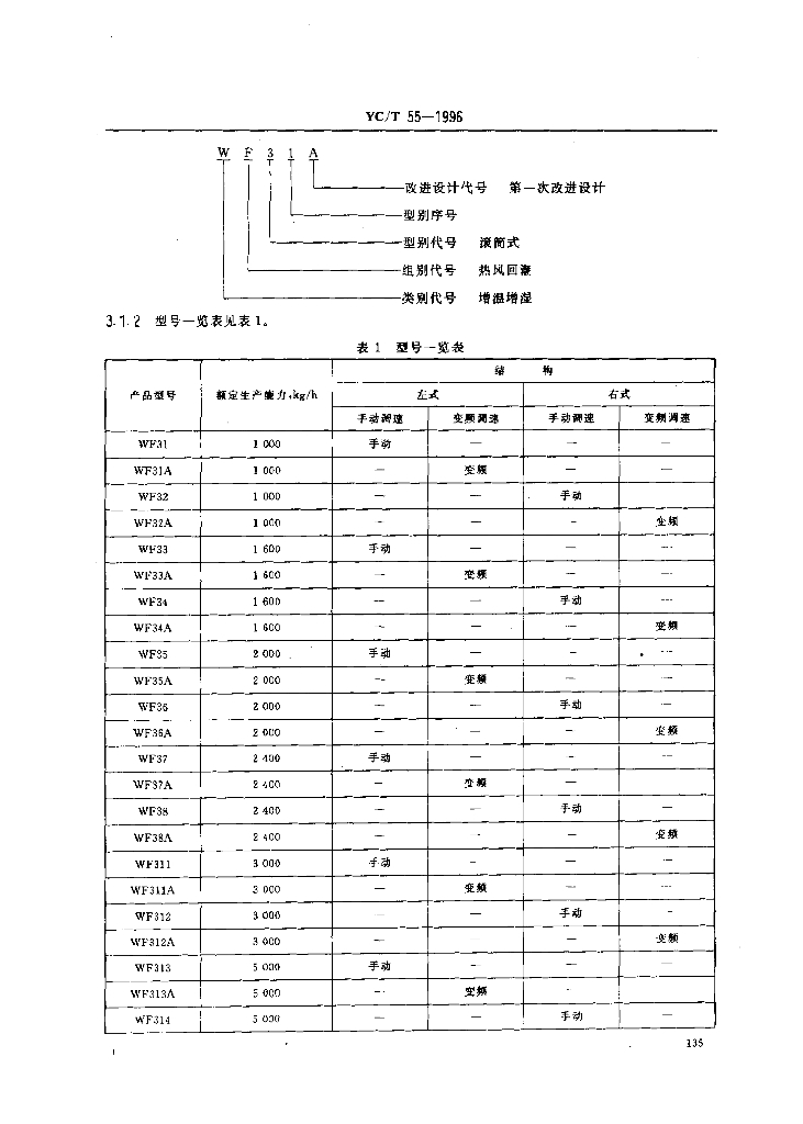 YC/T 55-1996 烟草机械WF31~38、WF311~318、WF321~322型滚筒式热风润叶机