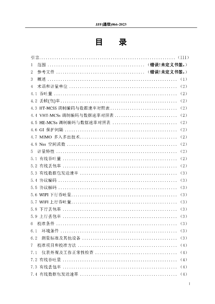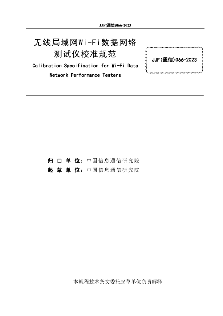JJF(通信)066-2023 无线局域网Wi-Fi数据网络测试仪校准规范(报批稿)