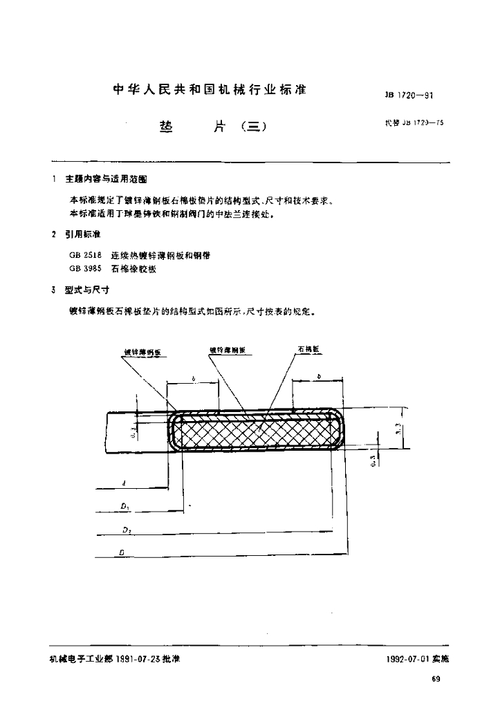 JB 1720-1991 垫片(三)垫片标准