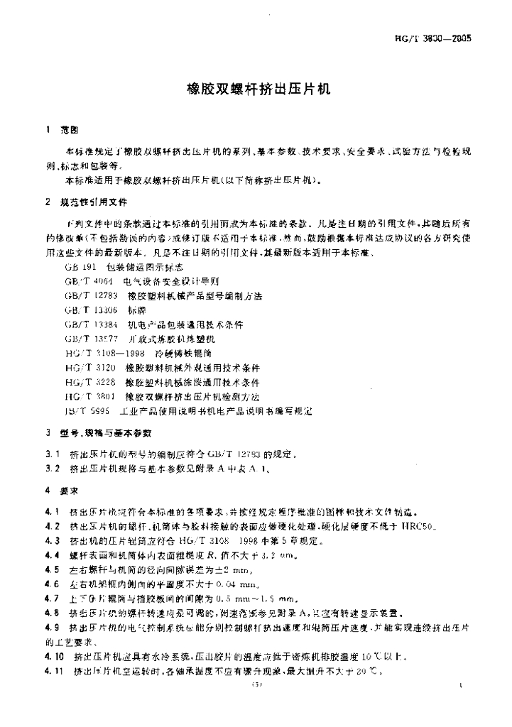 HG/T 3800-2005 橡胶双螺杆挤出压片机