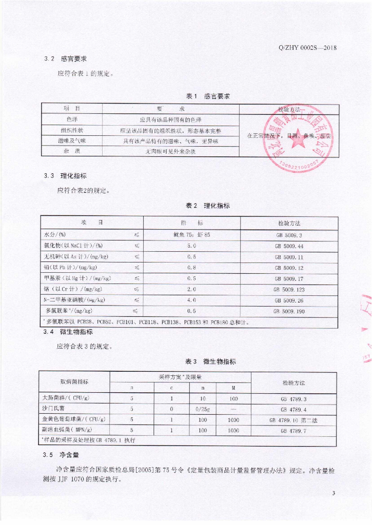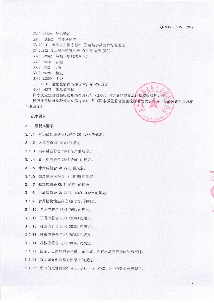 Q/ZHY 0002S-2018 卤制动物性水产制品