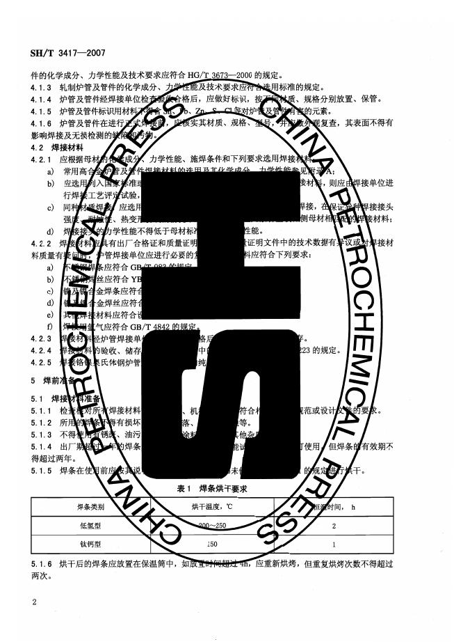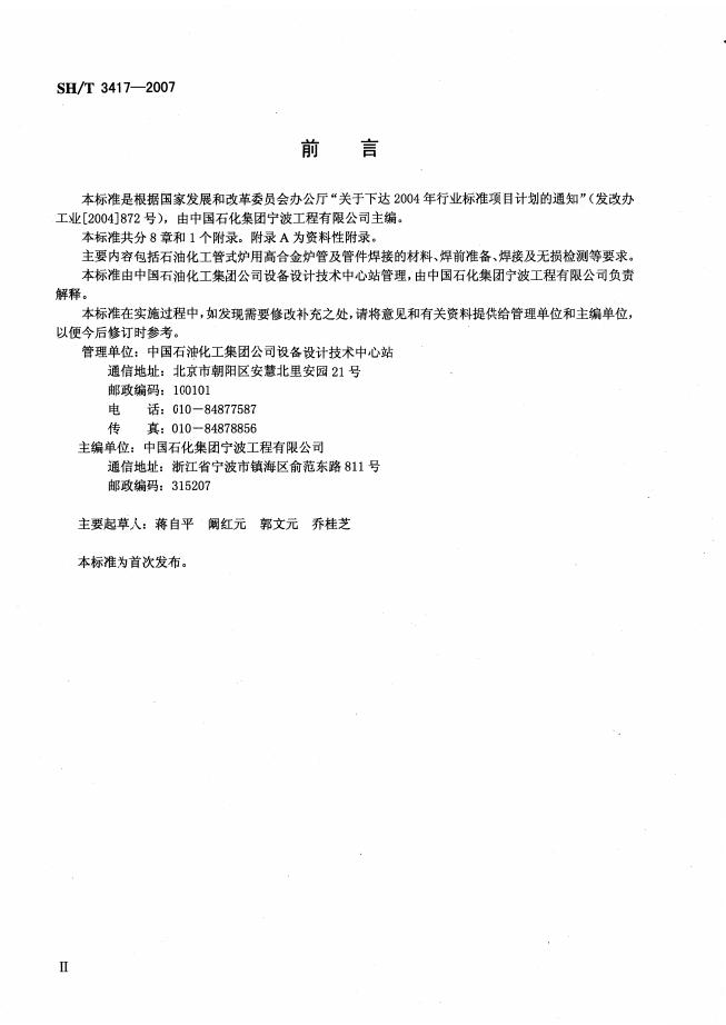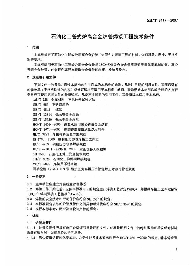 SH/T 3417-2007 石油化工管式炉高合金炉管焊接工程技术条件