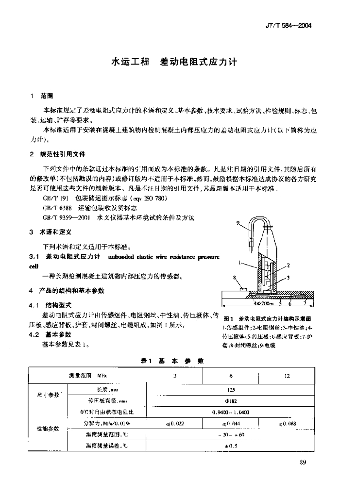 JT/T 584-2004 水运工程 差动电阻式应力计