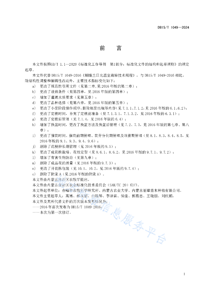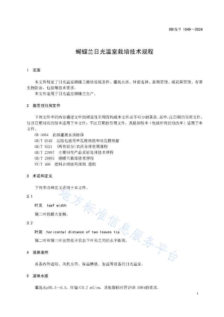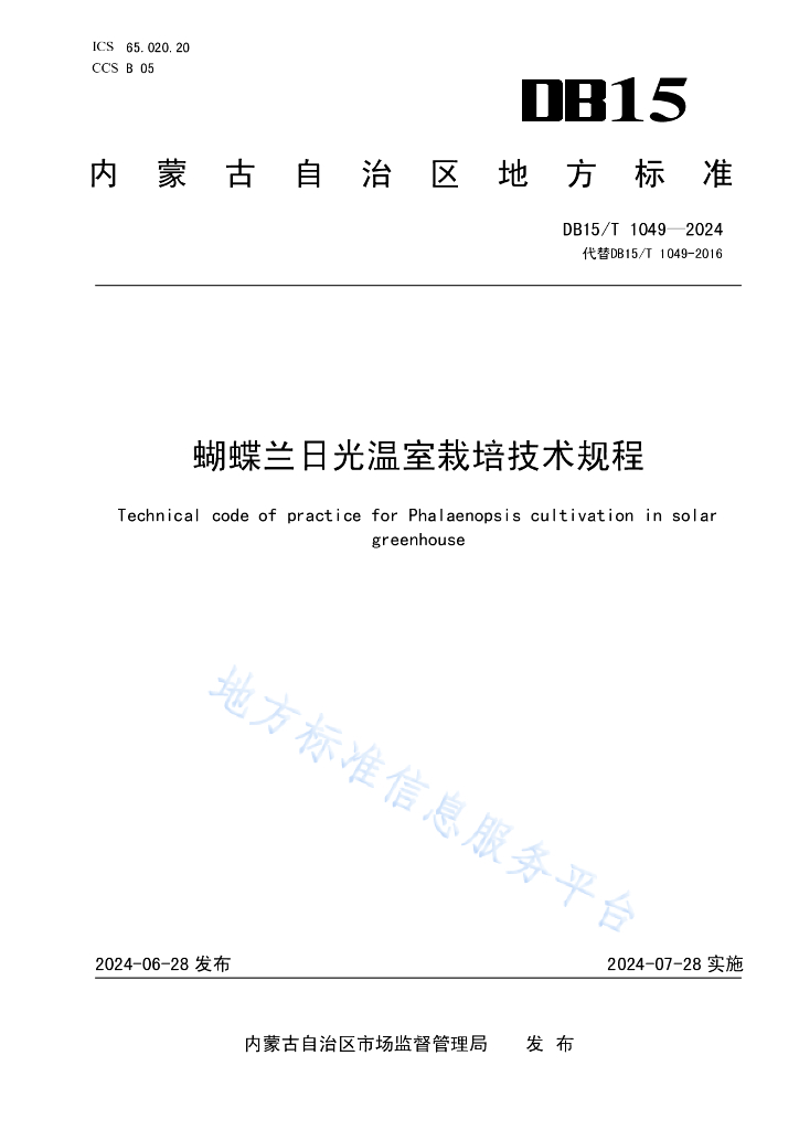 DB15/ 1049-2024 蝴蝶兰日光温室栽培技术规程